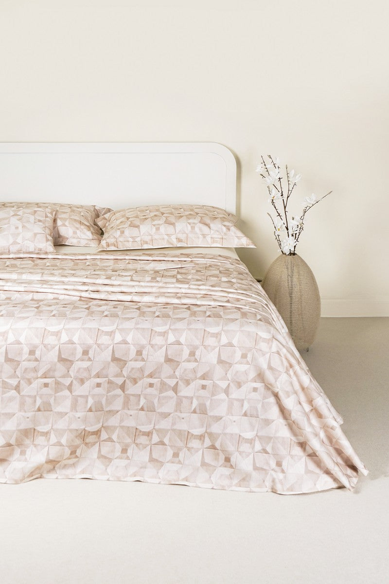 Il Copriletto Matrimoniale Zinia firmato Neìth celebra l’eleganza discreta attraverso un raffinato motivo geometrico che gioca sapientemente con luce e ombra. Un design moderno, equilibrato e sofisticato, perfetto per ambienti contemporanei e minimal.