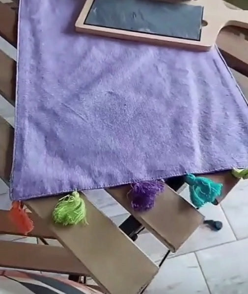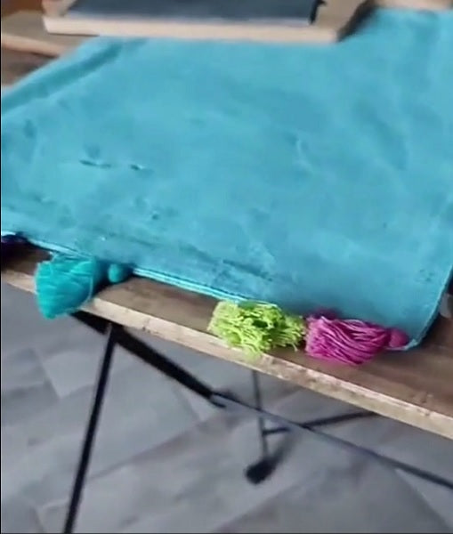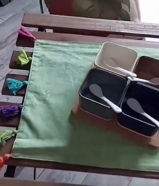 Le nappine colorate agli angoli donano un tocco vivace e artigianale, rendendo ogni pezzo unico e perfetto per rinnovare la mise en place con personalità.