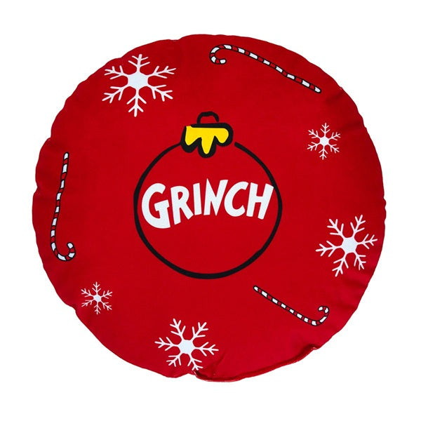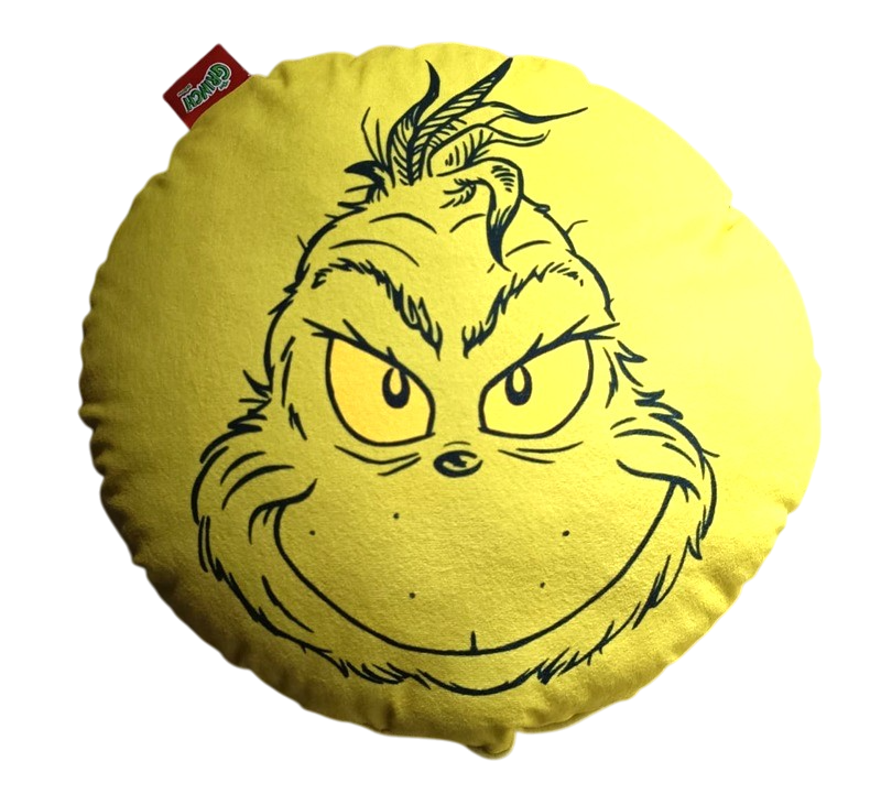 Realizzato in 100% poliestere di alta qualità, questo cuscino rotondo presenta la simpatica stampa del Grinch in versione verde o rossa, ideale per decorare divani, poltrone o letti durante le feste.