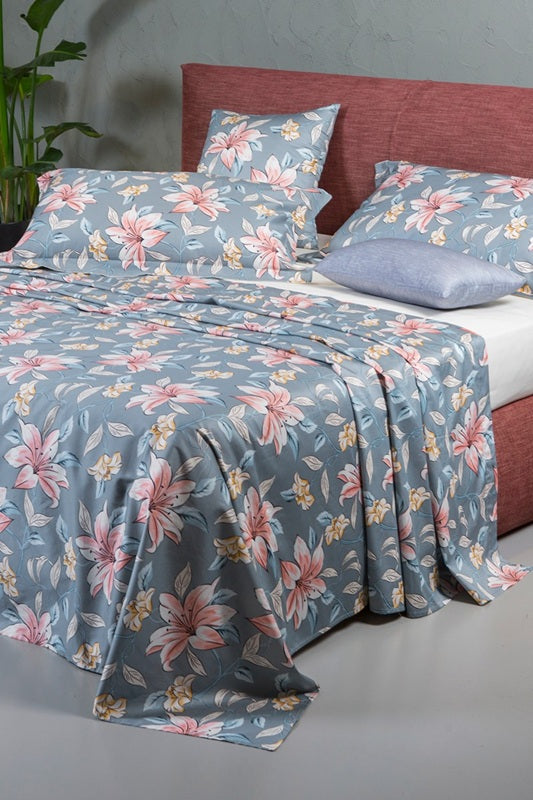 Realizzato in raso satin 100% cotone 300 TC, esprime la massima qualità del cotone: fresco, luminoso e incredibilmente piacevole sulla pelle. La fantasia floreale con stampa digitale, frutto di creatività e cura artigianale, dona al letto un’estetica raffinata e senza tempo.