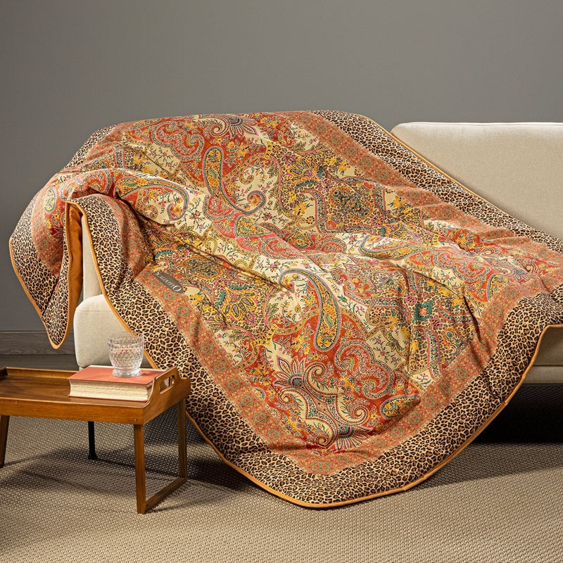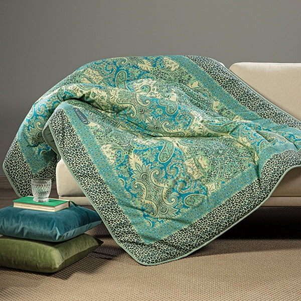 Il tessuto in cotone pettinato 100% garantisce morbidezza e traspirabilità, mentre l’imbottitura in microfibra da 250 g/m² offre un calore piacevole senza appesantire. Ideale sul divano, in camera o come coperta multiuso.