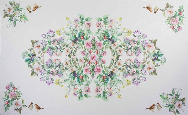 Realizzata in 100% cotone di alta qualità, è decorata con una splendida stampa floreale e piccoli uccellini, dettagli raffinati che rendono ogni mise en place unica e ricercata.