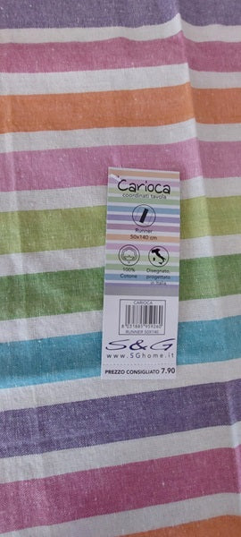 Porta allegria e stile italiano alla tua tavola con il Runner Carioca di S&G Home. Realizzato in 100% cotone di alta qualità, il runner è decorato con nappine sui due lati, aggiungendo un dettaglio raffinato e originale.