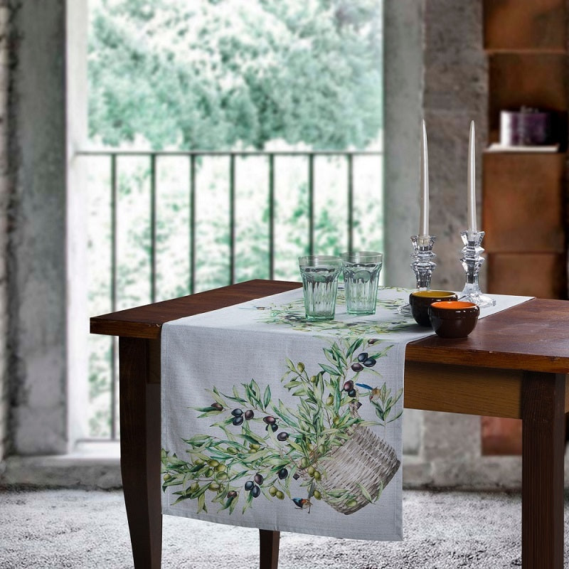 Porta sulla tua tavola tutto il fascino della Toscana con il Runner Frantoio di Piazza Pitti Firenze, realizzato in 100% cotone con stampa digitale ad alta definizione a tema olive.