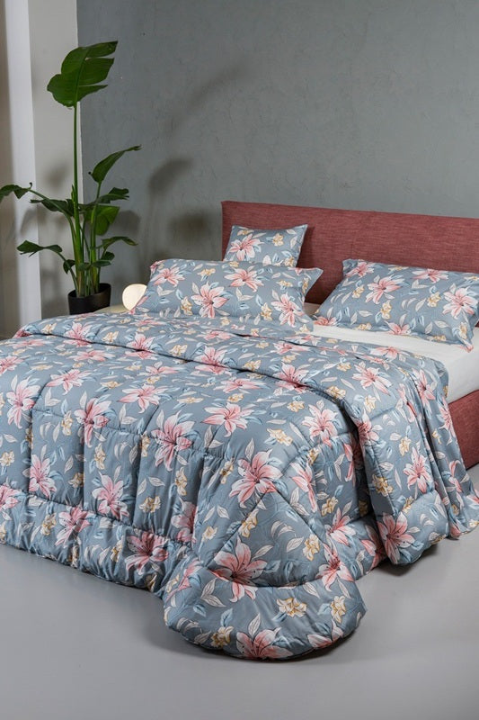 Il motivo floreale elegante, realizzato con stampa digitale di alta precisione, valorizza la camera da letto con stile e raffinatezza, rendendo la trapunta non solo funzionale ma anche un elemento decorativo.
